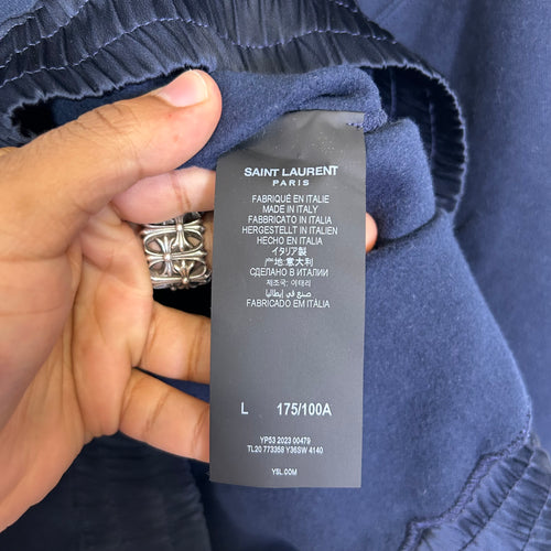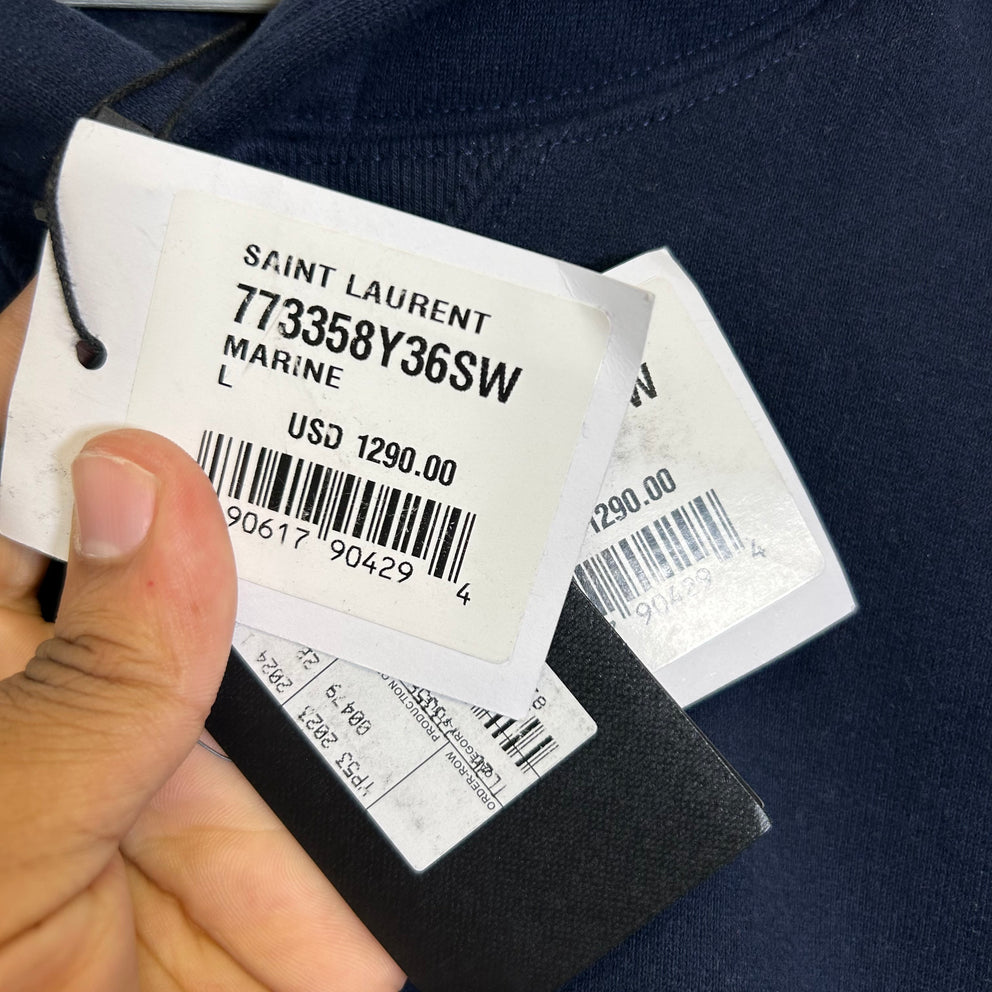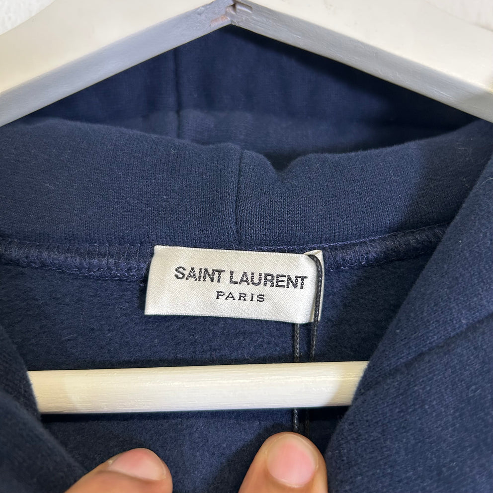 Saint Laurent Navy Embroidered Logo Hoodie Size L