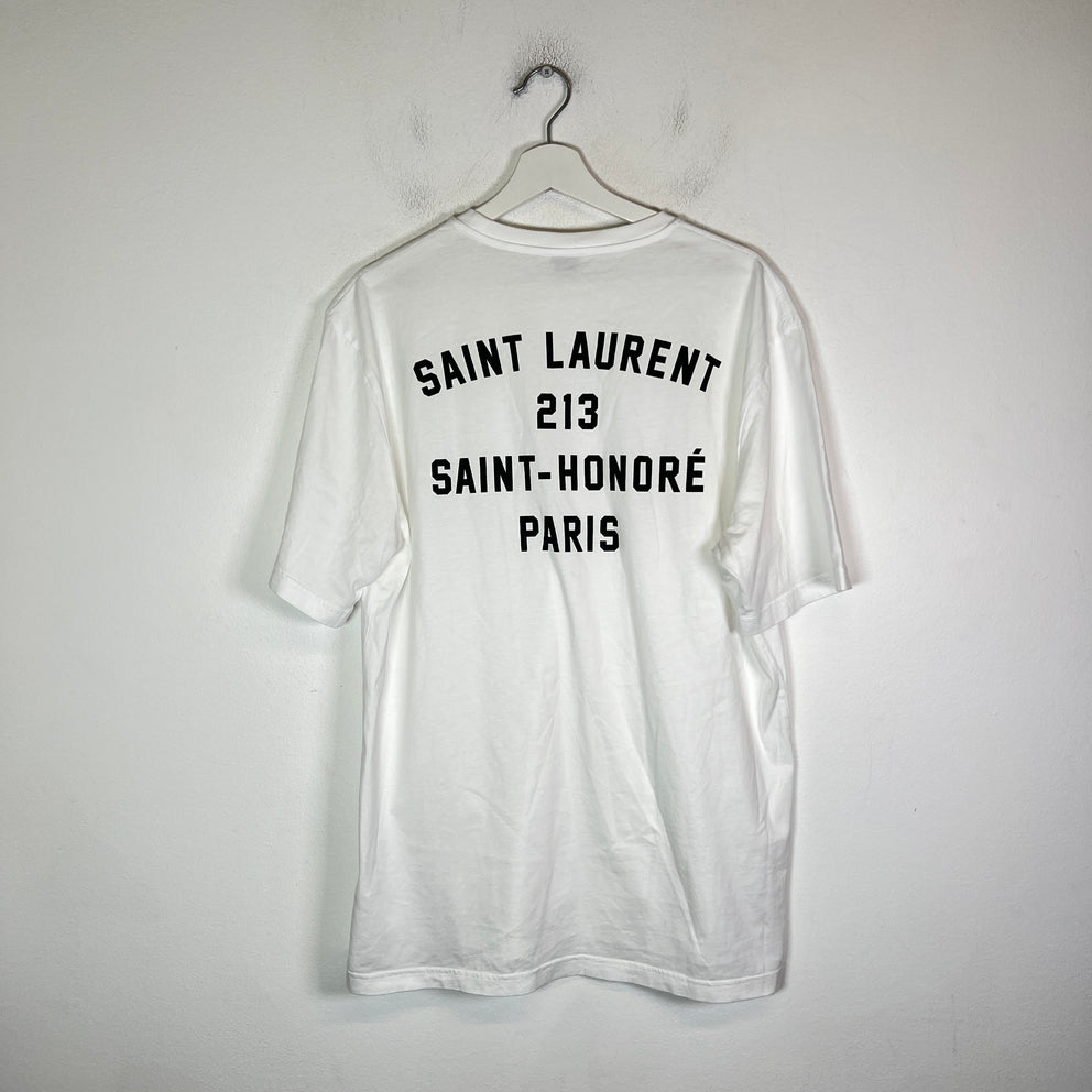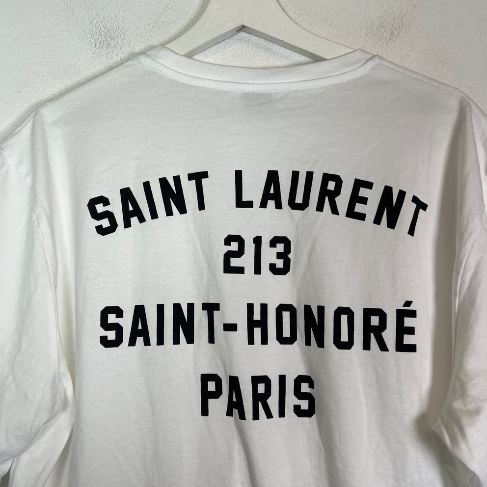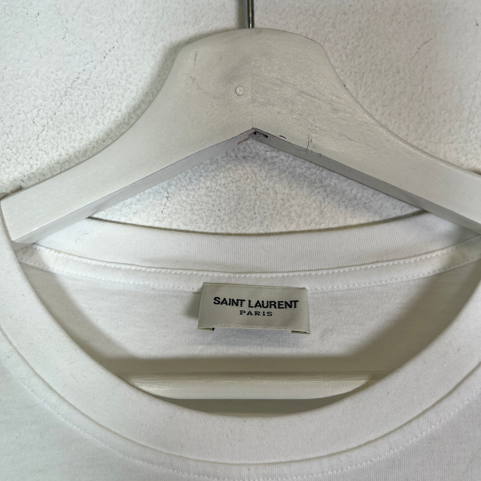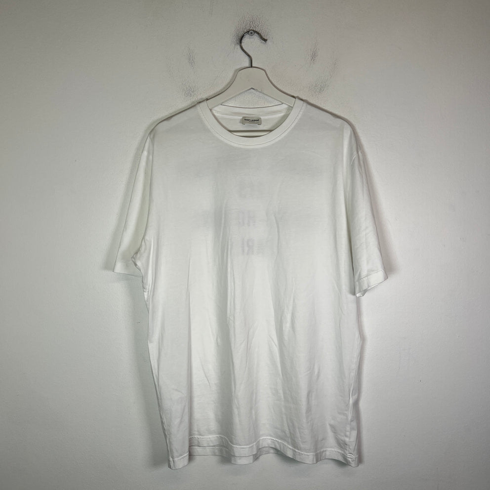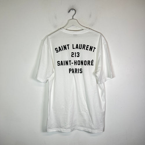 Saint Laurent Paris White Address Logo T-Shirt Size L