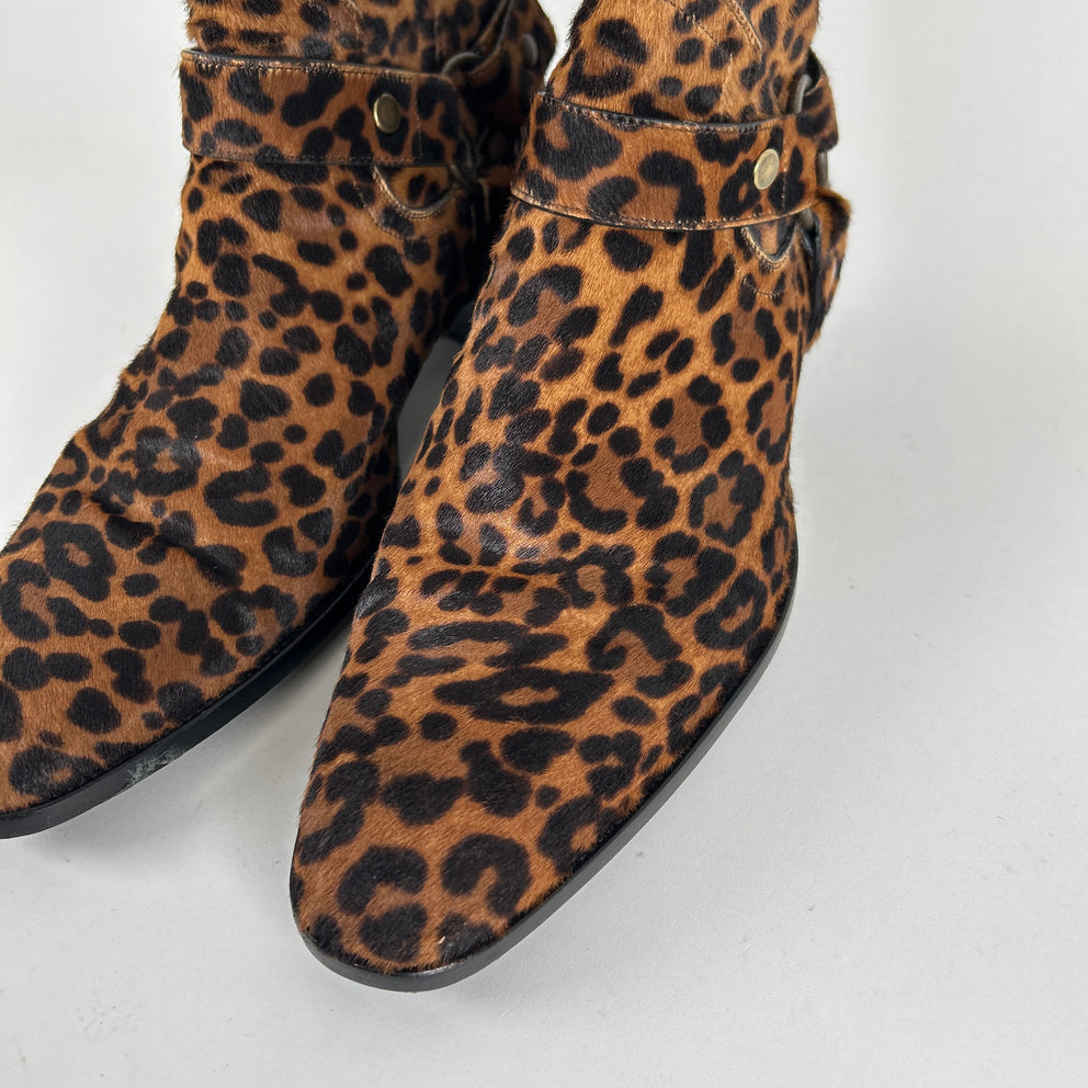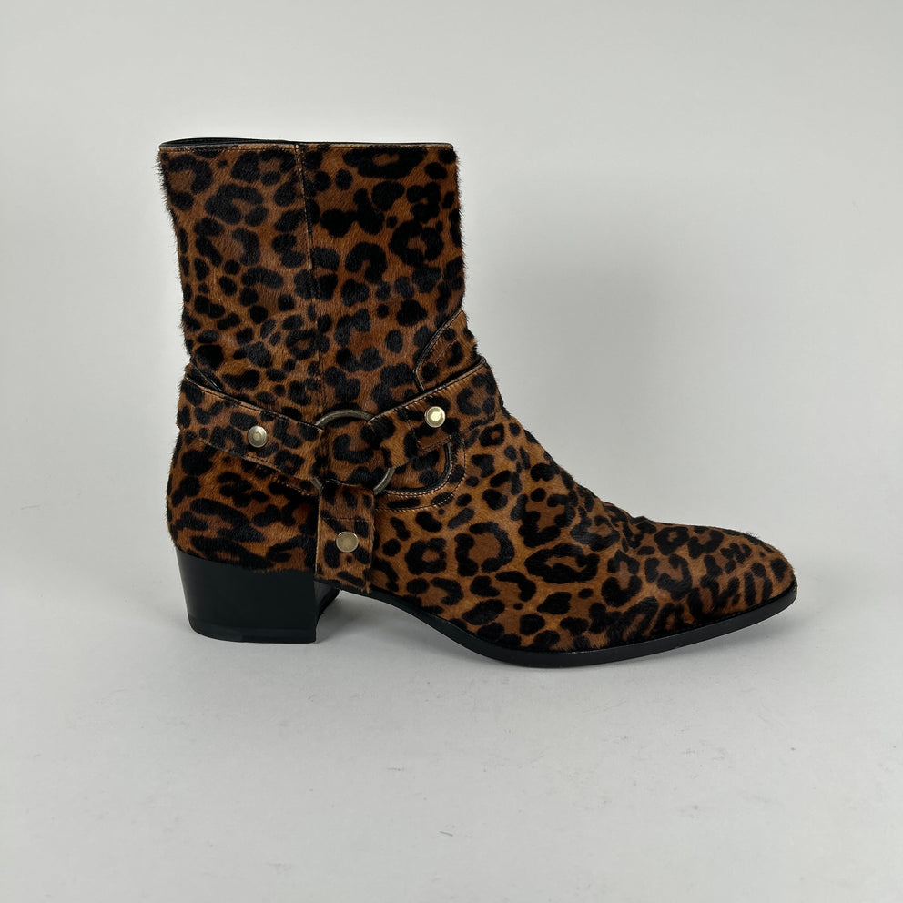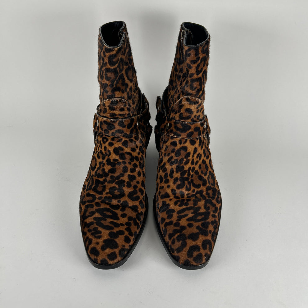 Saint Laurent Ponyhair Leopard Wyatt Boots Size 45
