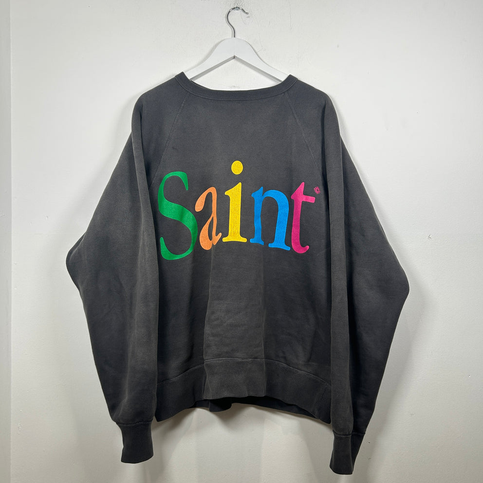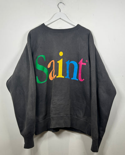 Saint Michael Faded Black Colorful Logo Crewneck Size XL