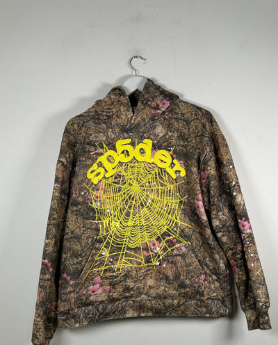 Sp5der Camouflage Yellow Logo Hoodie Size L