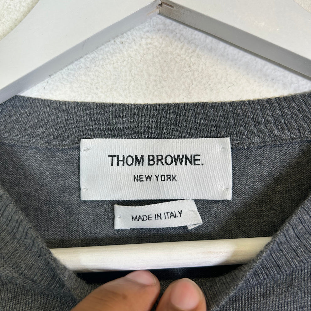 Thom Browne Grey Wool 4 Bar Lightweight Sweater Size 2