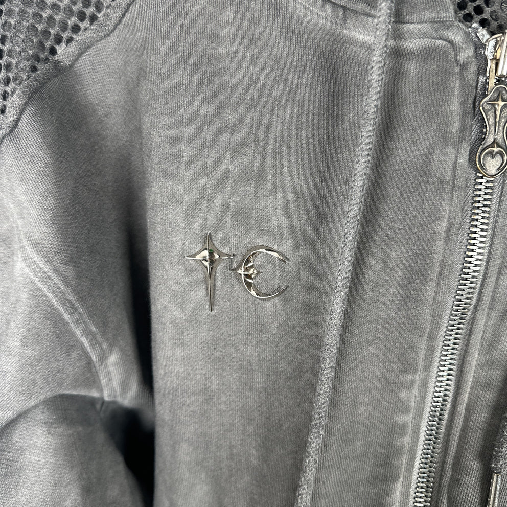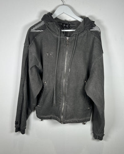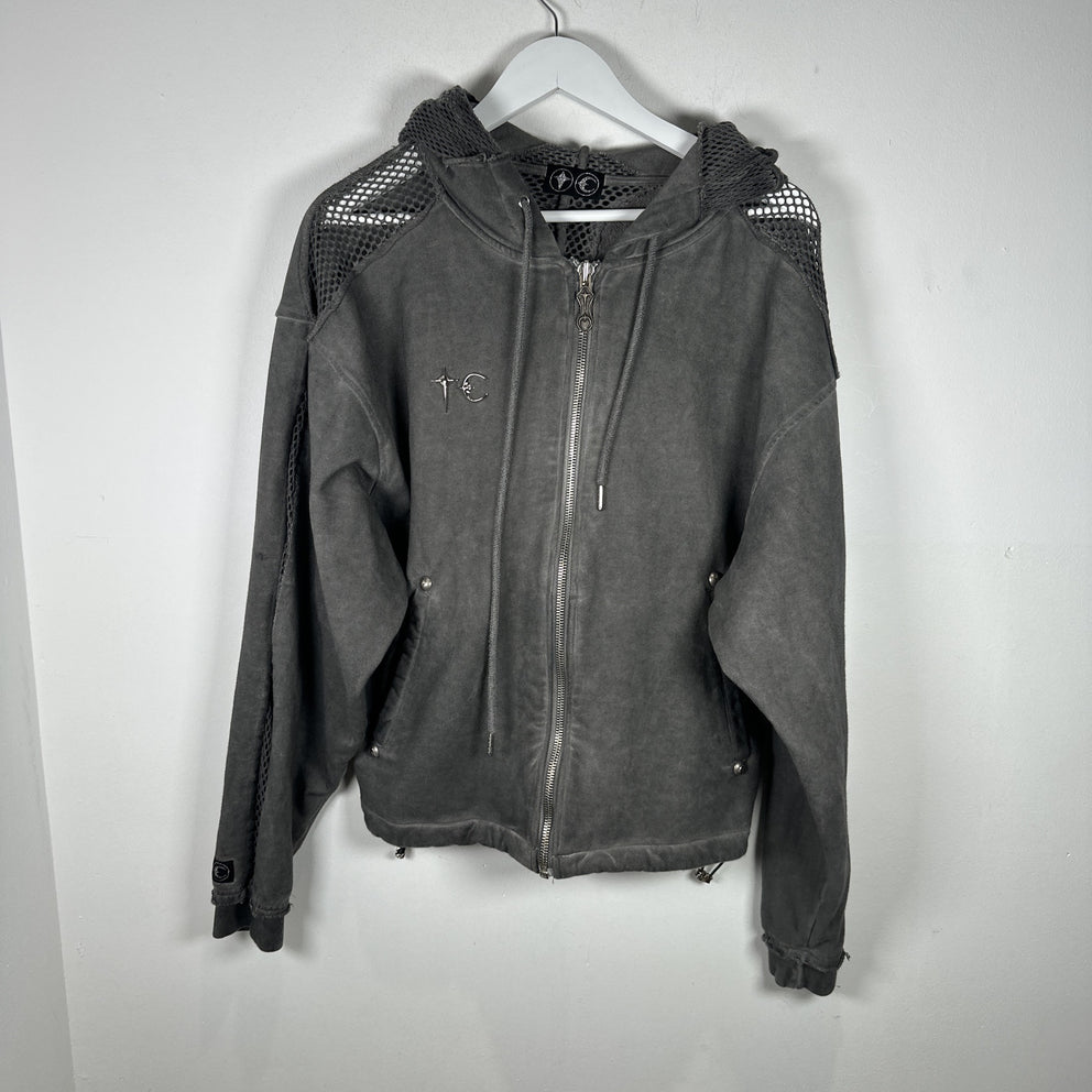 Thug Club Cropped Mesh Panel Zip Up Hoodie Size M