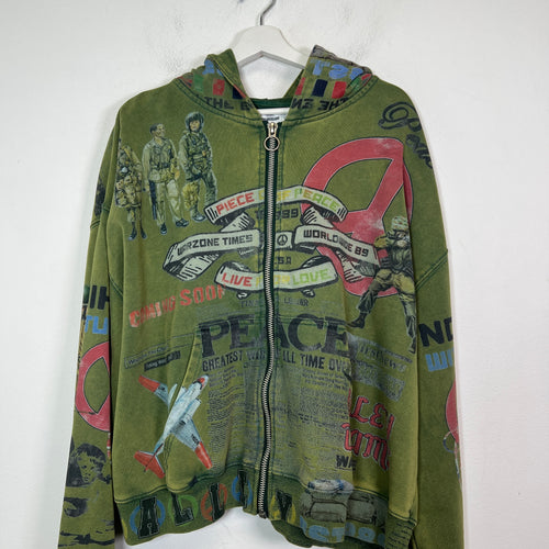 Vale Olive Forever Peace Zip-Up Hoodie Size XL