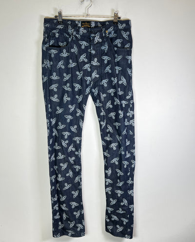 Vivienne Westwood Dark Blue Orb Print Jeans Size 29