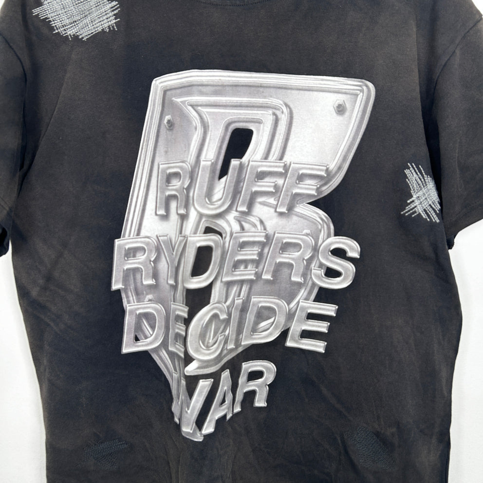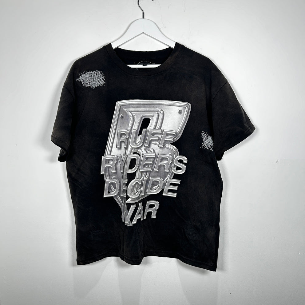 Who Decides War Black Ruff Ryders Logo T-Shirt Size L